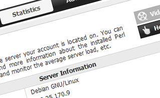 This section will give you detailed info about the server your web hosting account is hosted on. You can check the OS, the physical IP address and the current PHP/Perl/MySQL versions used, find more information about the installed Perl modules and the POP3/IMAP and SMTP mail servers, monitor the server load, etc.